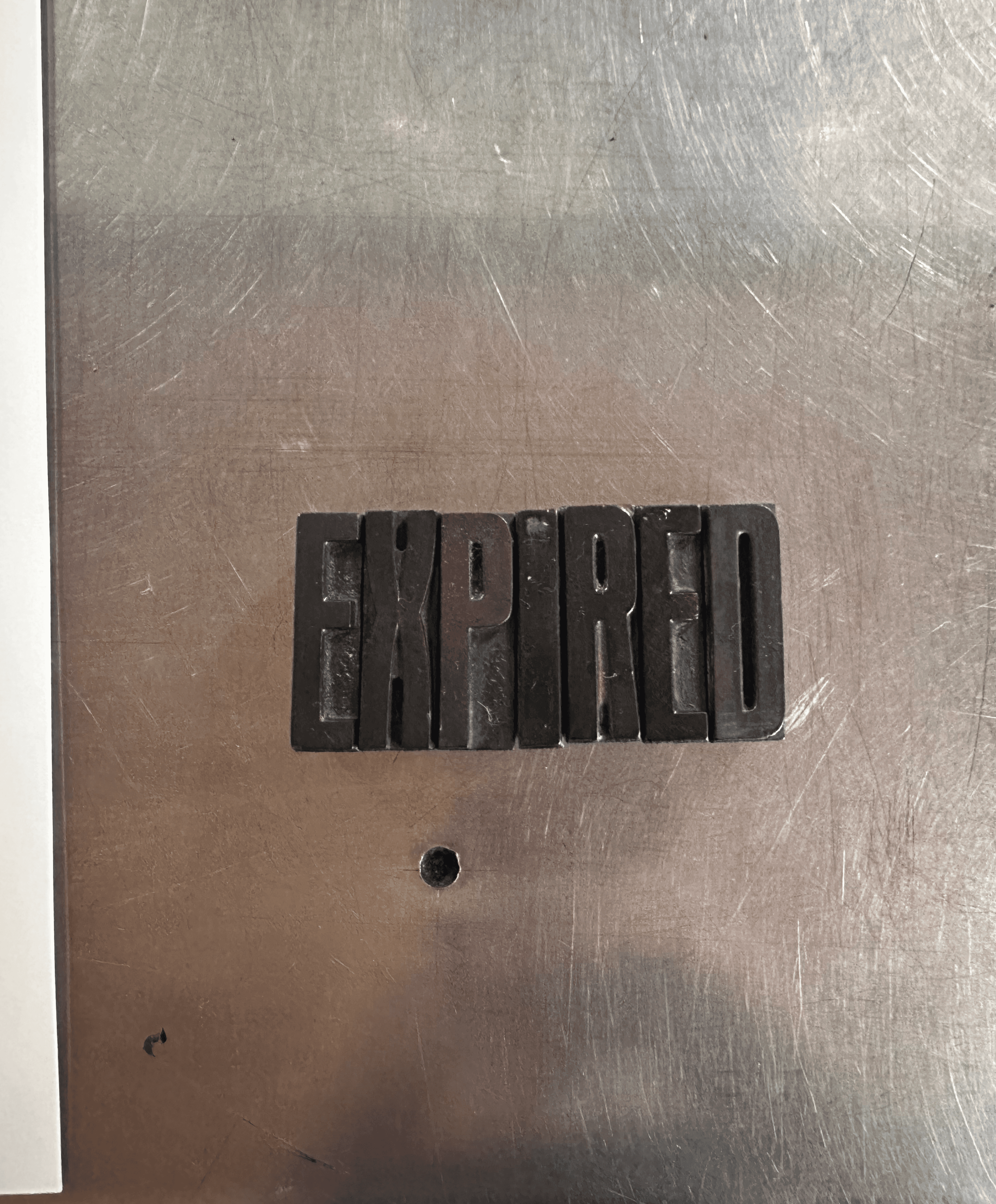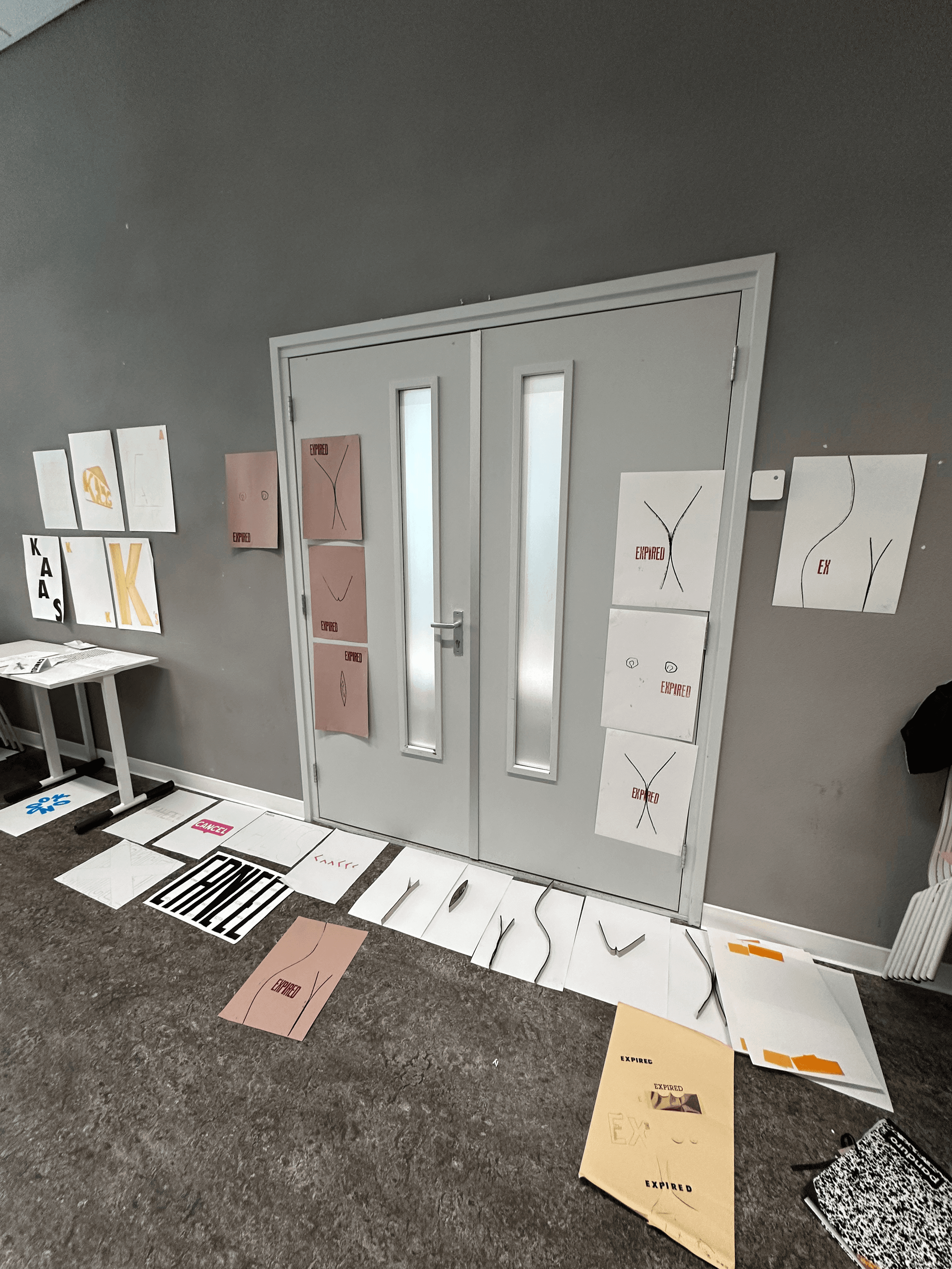 This project was part of a school course called ‘Typolitiek,’ where the goal was to create a political poster using a single word. For me, the word ‘expired’ resonated. I made 3D cardboard figurative shapes, and used them as a stamp. The word ‘expired’ was set in lead type and pressed deeply into the paper to make the word look like it was branded into the skin-like paper.